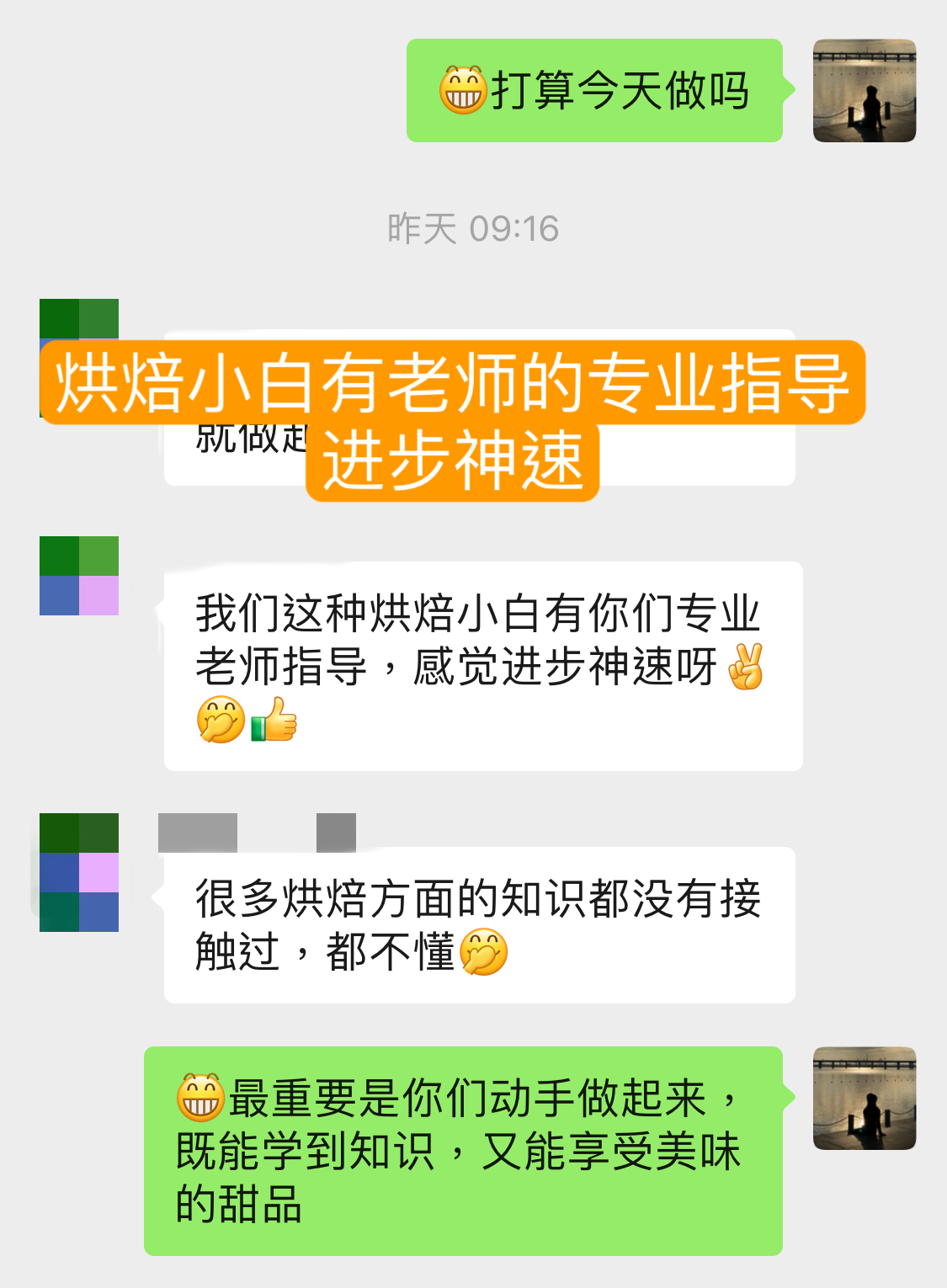 我们的学员都是非常优秀、觉知、有爱的同学。在社群里,大家可以通过交流分享彼此的经验和技巧,互相帮助和鼓励,从而建立起更加紧密的联系。这种交流不仅可以帮助大家更加自信地掌握纯素烘焙技巧,还能够获得更多的灵感和创意,从而为自己的烘焙之路带来更多的惊喜和乐趣。同时,因为大家都是从同一起步点出发,所以彼此之间的经验和技巧更加直接、实用,可以让大家更快地提升自己的烘焙水平,享受到更多的成功和成就感。