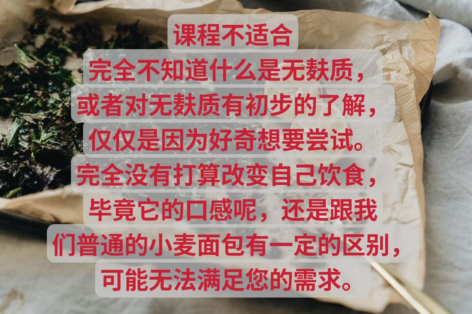 免揉免发酵,食材简单! 纯素,全谷物,不含油含坚果,车前洋子壳.有其他禁忌咨询老师. 无麸质、无泡打粉、无豆、无油、无糖