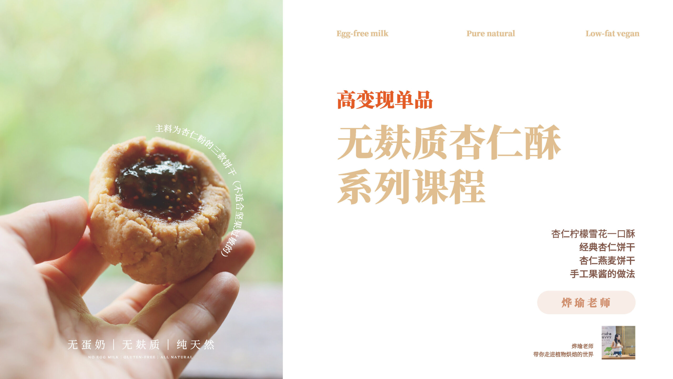 Courses / 无泡打粉 / 纯素果酱杏仁酥饼干系列课程